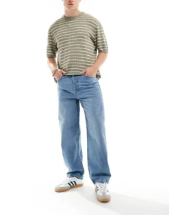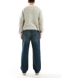 ONLY & SONS Fade Loose Fit Jeans In Vintage Washed Indigo For Men Mid Blue Brown Tint