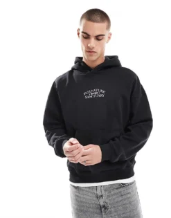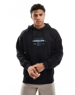 ONLY & SONS Oversized Hoodie With Horizons Back Print In Black For Men