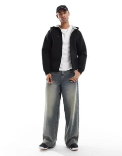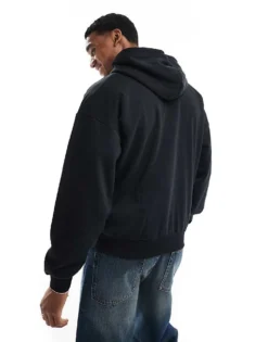 ONLY & SONS Oversized Scuba Zip Through Hoodie In Black For Men
