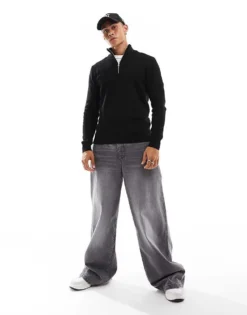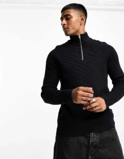 ONLY & SONS Ribbed Half Zip Jumper In Navy For Men Dark Navy