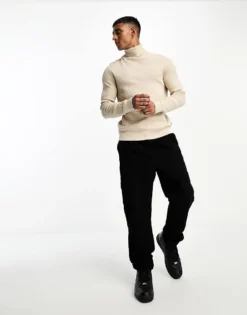 ONLY & SONS Roll Neck Ribbed Jumper In Beige For Men Silver Lining