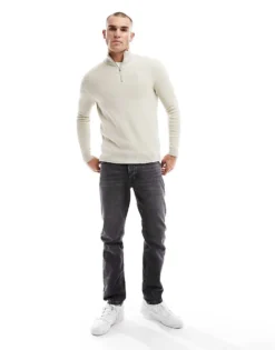 ONLY & SONS Ribbed Half Zip Jumper In Stone For Men Silver Lining