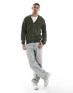 ONLY & SONS Ribbed Knit Cardigan In Green For Men Balsam Green