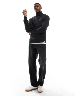 ONLY & SONS Roll Neck Jumper In Dark Grey For Men Grey Pinstripe