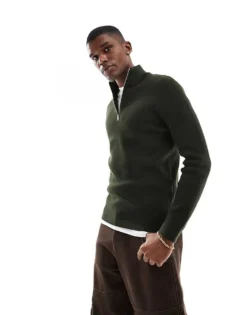 ONLY & SONS Ribbed Half Zip Jumper In Dark Green For Men Rosin