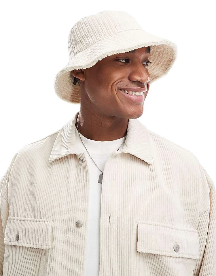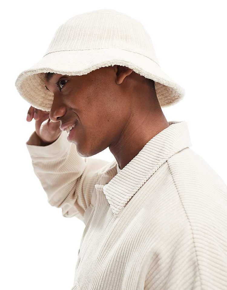 ONLY & SONS Cord Bucket Hat In Stone For Men Antique White