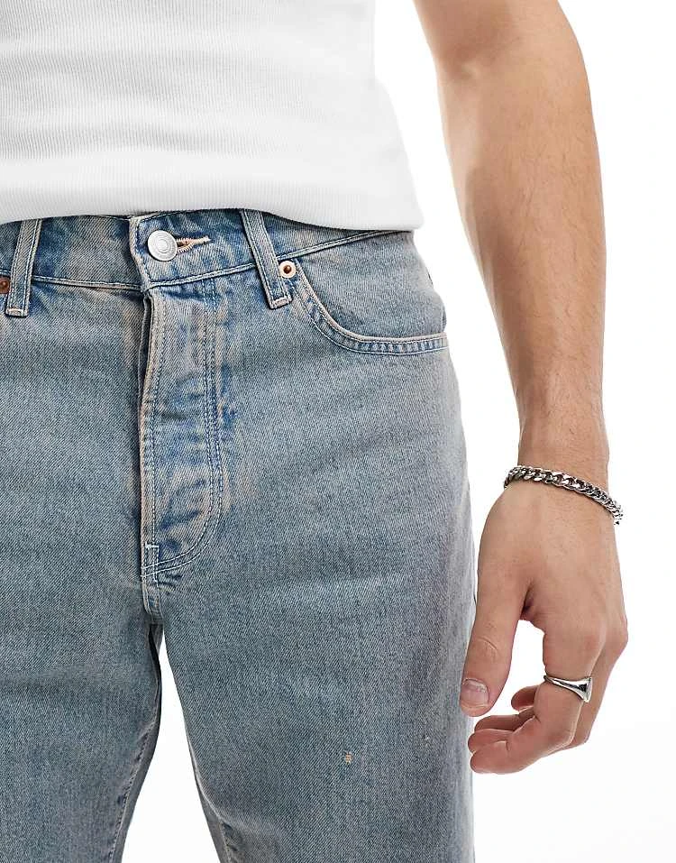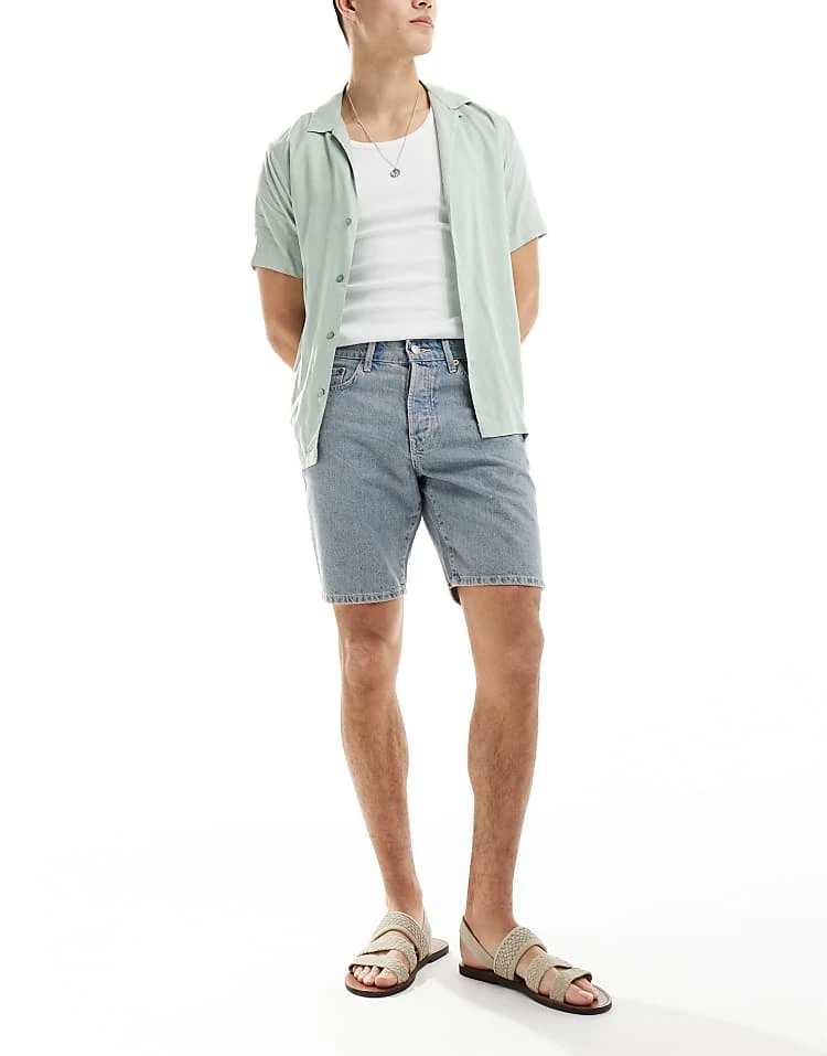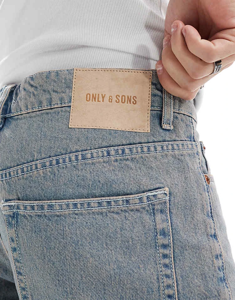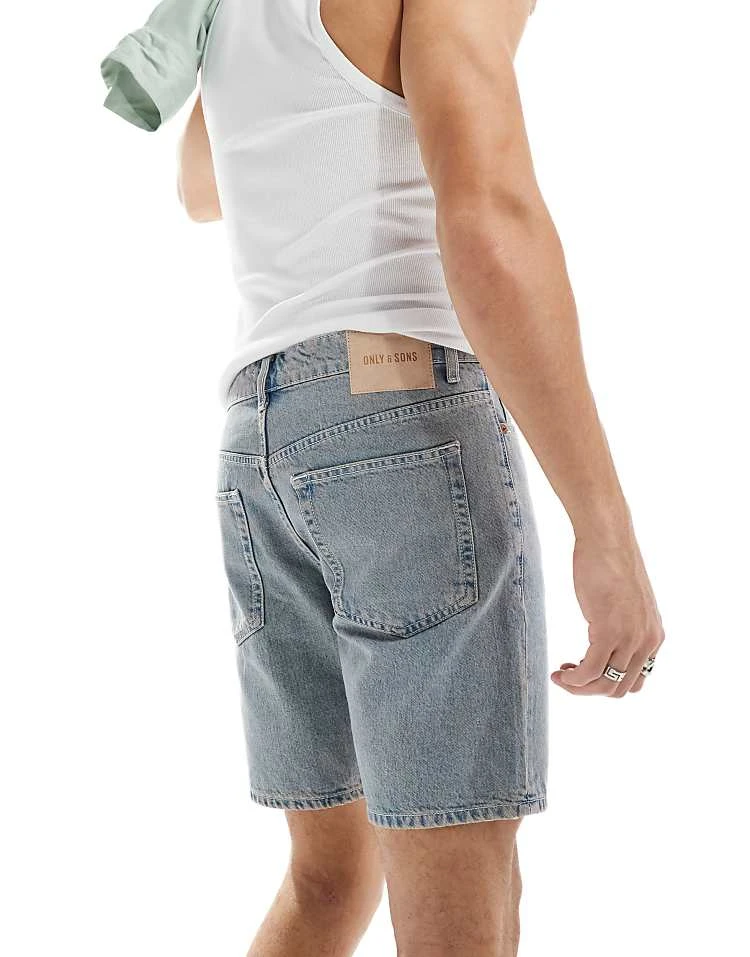 ONLY & SONS Edge Straight Fit Denim Shorts In Light Blue With Pink Rinse For Men Rosette