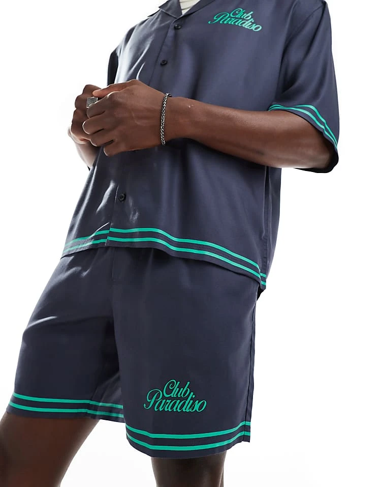 ONLY & SONS Printed Shirt & Short Co-ord In Navy