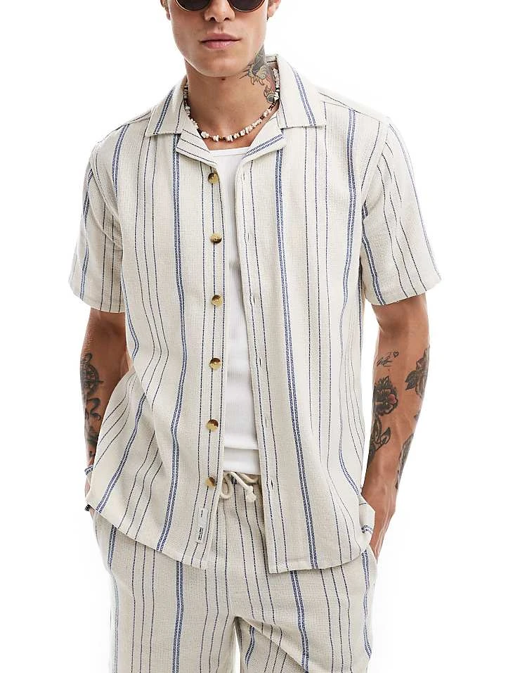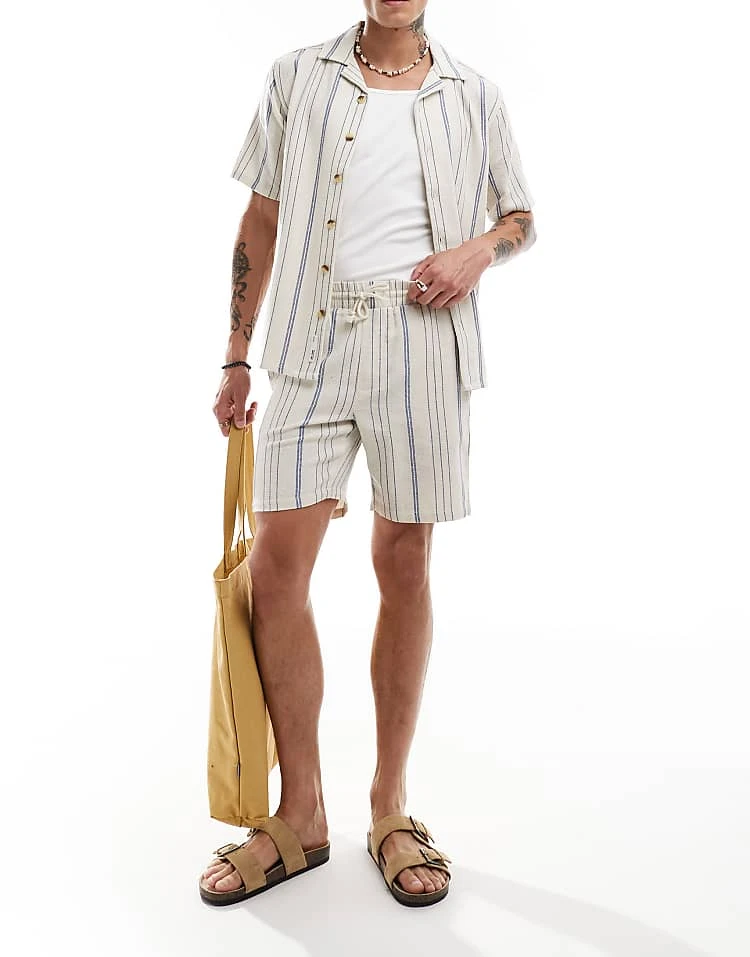ONLY & SONS Woven Co-ord In Beige & Blue Stripe