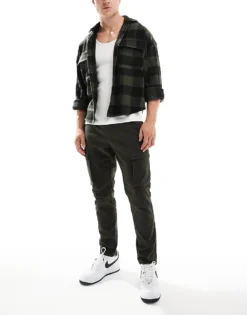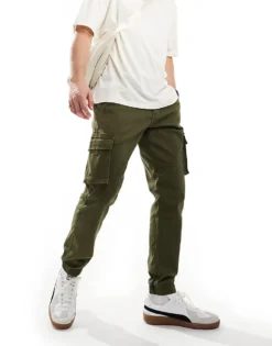 ONLY & SONS Tapered Fit Cargo Trouser With Cuffed Bottom In Khaki For Men Olive Night