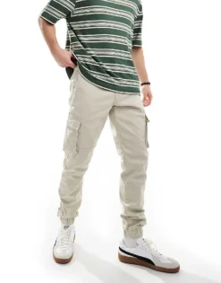 Only & Sons Tapered Fit Cargo Trousers With Cuffed Bottom In Sand For Men Silver Lining