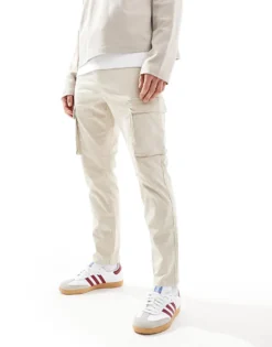 ONLY & SONS Tapered Fit Cargo Trouser In Stone For Men Silver Lining