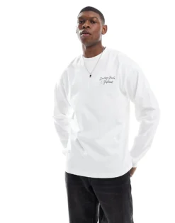 ONLY & SONS Boxy Fit Long Sleeve T-shirt With Basketball Back Print In White For Men Cloud Dancer